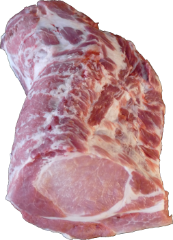 Fleischstück vom vorderen Teil des Schweines unterteilt in die magere dicke Schulter und das Schultermeisel - leicht durchgezogen. Geeignet für Braten und zum Kochen.