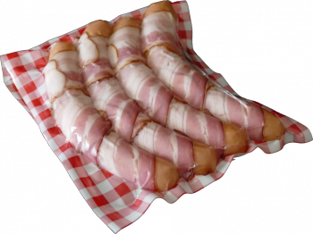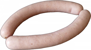 Würstchen aus Rind- und Schweinefleisch fein gekuttert, gebrüht, mild geräuchert im echten Saitling.