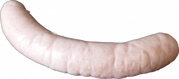 dünne Würstchen aus Rind- und Schweinefleisch nach hauseigenem Rezept gewürzt, gebrüht im echten Saitling.