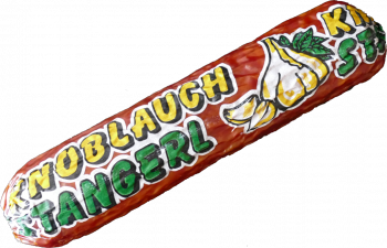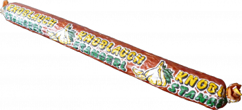 Dauerwurst aus Rind- und Schweinefleisch nach traditionellem Rezept gewürzt, mit rustikalem Knoblauchgeschmack. Geräuchert, heiß geräuchert im speziellen dünnen Kunstdarm. Zur Abtrocknung im Tockenraum gelagert.