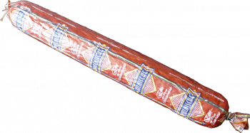 Dauerwurst aus Rind- und Schweinefleisch nach traditionellem Rezept gewürzt. Geräuchert, heiß geräuchert im speziellen Kunstdarm. Zur Abtrocknung im Trockenraum gelagert.