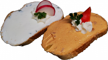 Sandwichbrötchen mit Liptauer oder Eieraufstrich, Schinkengervais, Karottenaufstrich, Fischaufstrich, Topfenkäse oder Leberpastete.